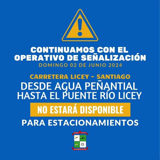 El Ayuntamiento Municipal de Licey al Medio Continuará con las Jornadas de Limpieza y de Señalización, por favor a todos los munícipes tomar otras vías alternas o métodos factibles para el estacionamiento.