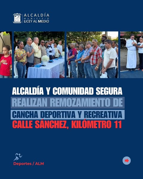Gracias a nuestro compromiso como gobierno local a través de nuestro Alcalde Municipal, Domingo Almonte y con el apoyo del Programa Comunidad Segura a cargo del Lic. David Polanco, hemos gestionado en la Calle Sánchez, Kilómetro 11 una cancha deportiva totalmente nueva y remodelada. Un espacio digno para el deporte, la recreación y la sana convivencia que tanto merecen nuestros jóvenes y familias.