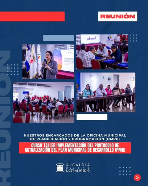 En el Ayuntamiento Municipal de Licey al Medio, seguimos fortaleciendo las capacidades de nuestro equipo para ofrecer una gestión más eficiente y planificada. Por eso, nuestros colaboradores de la Oficina Municipal de Planificación y Programación (OMPP) están participando en el Curso-Taller sobre la implementación del Protocolo del Plan Municipal de Desarrollo (PMD).
