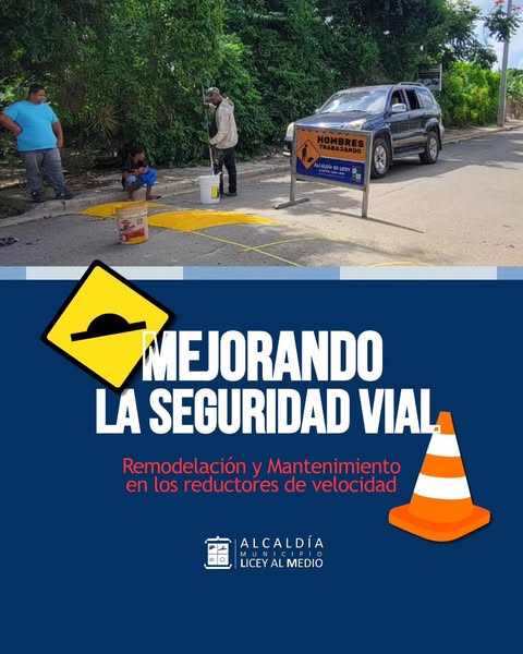 En el Ayuntamiento Municipal de Licey al Medio, seguimos trabajando para hacer de nuestras calles un lugar más seguro para todos. Por eso, estamos realizando labores de remodelación y mantenimiento de los reductores de velocidad en puntos estratégicos del municipio.