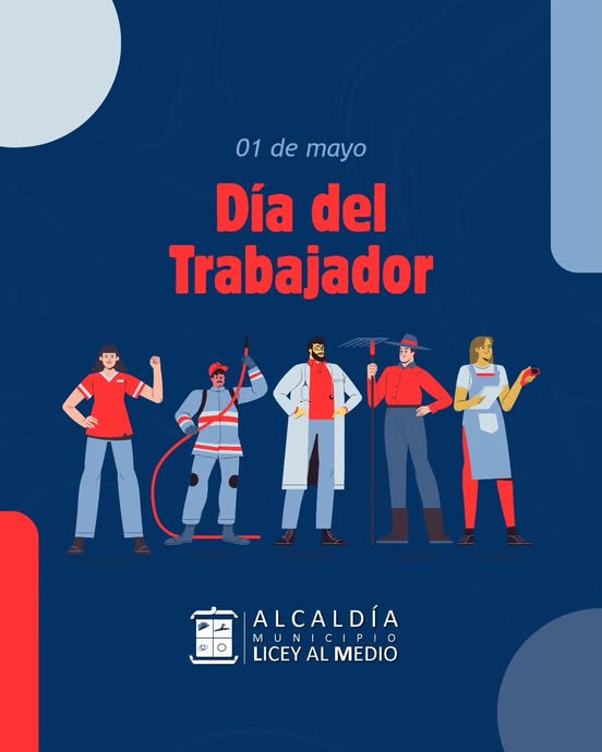 En ocasión del Día del Trabajador, este 1 de mayo, el alcalde del municipio de Licey al Medio, Domingo Almonte, felicita a todos los hombres y mujeres que con esfuerzo y dedicación impulsan el desarrollo de nuestro pueblo, en especial a nuestros colaboradores del ayuntamiento, cuyo compromiso diario fortalece la gestión municipal.