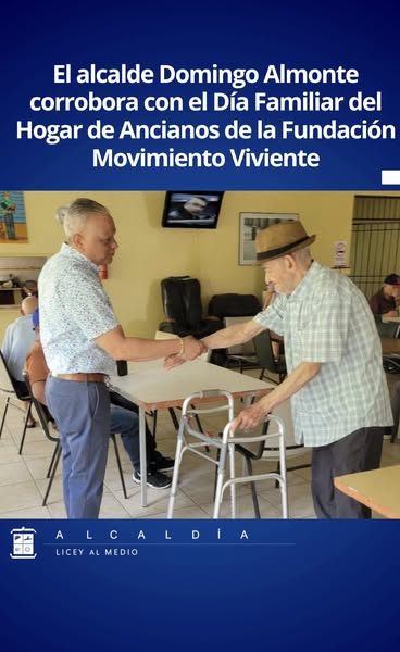 El alcalde Domingo Almonte participó y brindó su respaldo al Día Familiar organizado por el hogar de ancianos de la Fundación Movimiento Viviente. Con esta visita, el alcalde reafirmó su compromiso con las personas de la tercera edad, apoyando una jornada dedicada a fortalecer los lazos familiares y promover el bienestar integral de los adultos mayores. Durante el evento, compartió con los residentes y sus familiares, destacó la importancia del respeto y la atención digna hacia los envejecientes, y expresó su intención de seguir impulsando iniciativas que beneficien a este sector vulnerable de la comunidad. La presencia del alcalde fue recibida con aprecio por parte del personal, los residentes y los organizadores, quienes agradecieron su cercanía y apoyo constante.