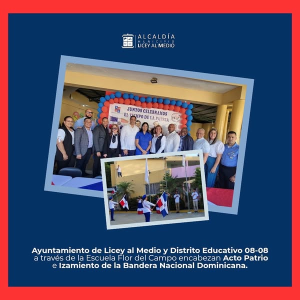 El Ayuntamiento Municipal de Licey al Medio, junto al Distrito Educativo 08-08 y la Regional de Educación 08, encabezó este emotivo acto patrio en la Escuela Flor del Campo, donde se realizó el solemne izamiento de nuestra Bandera Nacional.