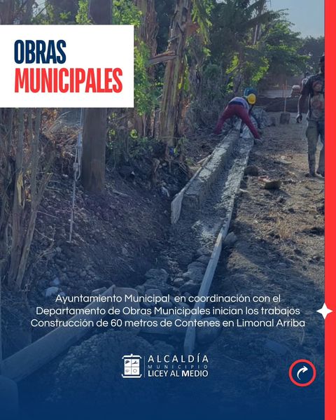 El Ayuntamiento de Licey al Medio sigue trabajando para el bienestar de las comunidades. Esta vez, avanzamos en la Construcción de 60 metros de contenes en la comunidad de Limonal Arriba, mejorando así las vías y brindando mayor seguridad para todos.