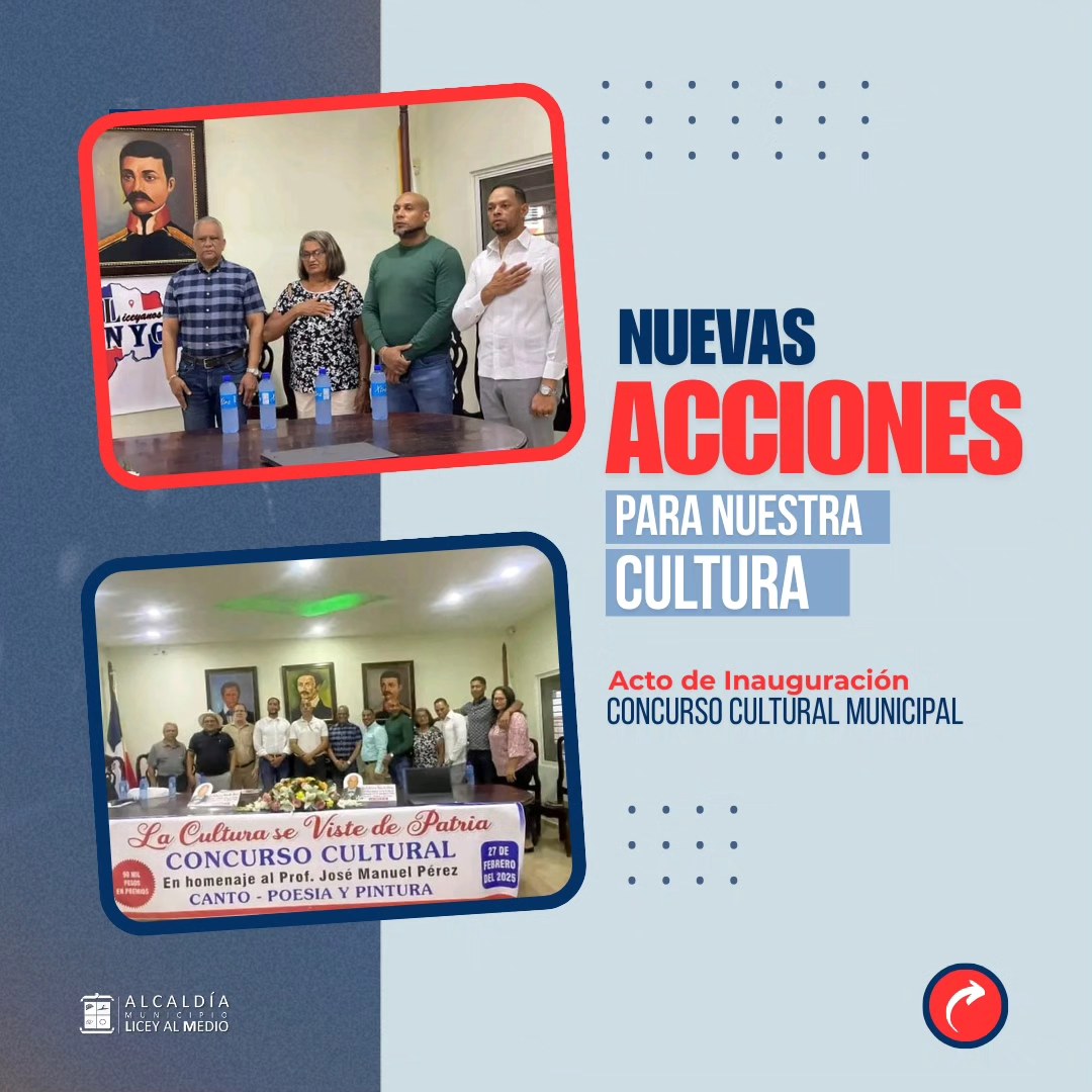 En un esfuerzo conjunto, el Ayuntamiento de Licey al Medio, el Distrito Educativo 08-08, y Liceyanos NYC presentan el concurso «La cultura se viste de patria», dedicado al querido profesor José Manuel Pérez. Este certamen celebra nuestro talento local con expresiones artísticas como canto, poesía y pintura, brindando a nuestra juventud un espacio para brillar.