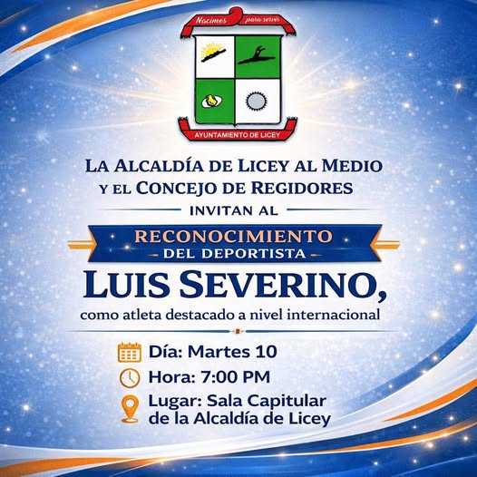 La Alcaldia de Licey al Medio y el Concejo de Regidores invitan al reconocimiento del deportista Luis Severino, como atleta destacado a nivel internacional.