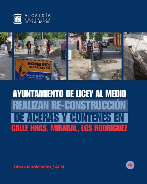El Ayuntamiento Municipal continúa impulsando mejoras en la infraestructura urbana, esta vez con la reconstrucción de aceras y contenes en la Calle Hermanas Mirabal, sector Los Rodríguez. Estas obras no solo embellecen, sino que también garantizan la seguridad de peatones y conductores.