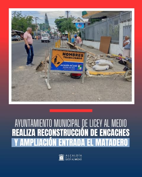 El Ayuntamiento Municipal de Licey al Medio avanza con la reconstrucción de encaches y la ampliación de la entrada de la comunidad El Matadero, en Licey Centro