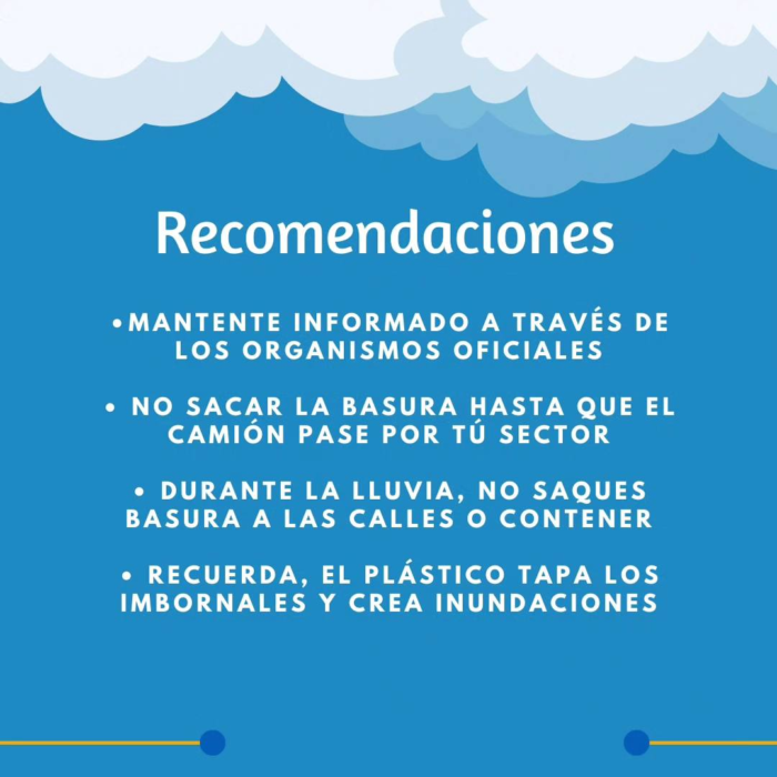 Invitamos a la ciudadanía a mantenerse atentos a todas las informaciones suministradas oficialmente emitidas por los organismos de emergencia, tras ser declarados por el @coe_rd en alerta verde debido a las lluvias provocadas por el paso de la vaguada.